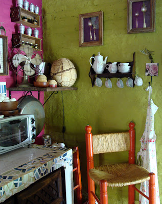 Uma profusão de objetos, cores, formas... essa cozinha encanta,